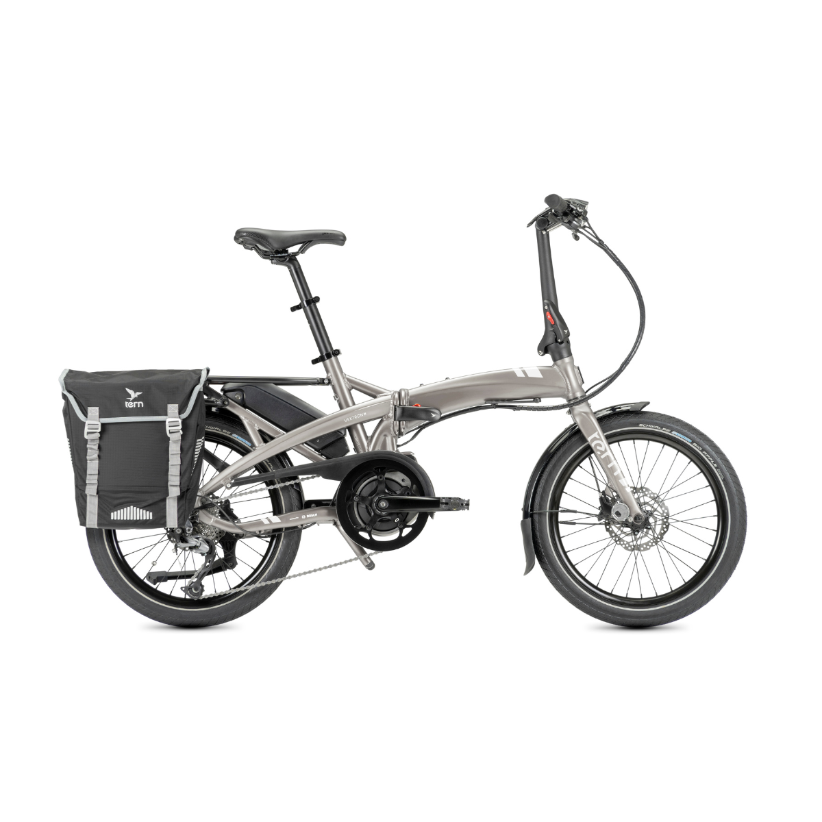 With structural cues from the heavy-duty Tern GSD, the new Atlas V Rack has been massively strengthened and increased in size, with a load capacity of 27 kg (59 lb). This reduces flex for more secure handling when the bike is loaded. Riding with your little one? Add a Thule Yepp Maxi or Dash® RM child seat—no adapters needed. The Atlas V Rack is also KLICKfix® compatible, and can hold panniers of different sizes—including the Bucketload Pannier, which was designed to fit every configuration of the Vektron.